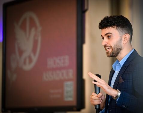Hoseb Assadour is onze jongste Vluchtelingenambassadeur en een van de meest inspirerende sprekers. Met zijn inzet voor een verdraagzame samenleving en zijn krachtige manier van spreken is hij een uitstekende vertegenwoordiger van nieuwkomers. Ik beveel hem van harte aan als spreker of panellid.